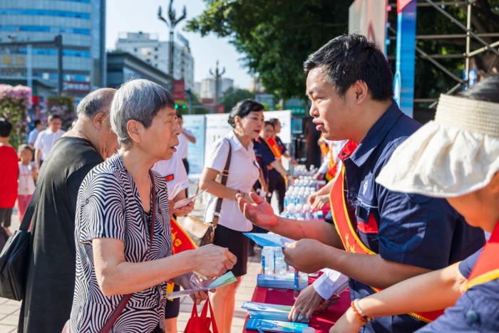 上午8時(shí),設置在竹湖園廣場(chǎng)的“520”便民服務(wù)點(diǎn),熱鬧不已,炳草崗水廠(chǎng)、怡康飲用水有限公司共產(chǎn)黨員服務(wù)隊、青年志愿者服務(wù)隊的隊員們,禮貌熱情地向群眾介紹集團公司“520”服務(wù)品牌建設理念,發(fā)放“520”民生服務(wù)承諾、現行水價(jià)政策、用水節水常識等宣傳資料,對群眾關(guān)心的水質(zhì)、水壓、抄表、收費等問(wèn)題進(jìn)行耐心細致的逐一解答。